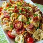 A light and invigorating salad featuring cheese tortellini, crispy bacon, tangy ranch dressing, and vibrant vegetables, perfect for picnics and gatherings.