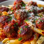 The comforting aroma of baked pasta wafts through the kitchen, filling the air with promises of warmth and satisfaction. As you pull the bubbling casserole from the oven, the melted cheese glistens like soft snow atop a landscape of rich marinara and perfectly cooked meatballs. You can almost hear the delightful crunch as a serving spoon scoops into the golden crust, releasing billows of steam that carry the enticing scents of garlic and Italian herbs to your waiting senses. Every bite offers a delightful explosion of flavors, the savory meatballs melding beautifully with the tender penne and creamy cheese, creating an experience that feels like a generous embrace on a chilly evening.