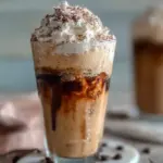 - Assemble the Frappuccino: Pour the mixture into tall glasses and top with coconut whipped cream. Optionally, add a pinch of vanilla bean powder or grated dark chocolate on top.