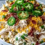 The aroma of sizzling chicken mingles with the tantalizing scent of spicy jalapeños and creamy cheese, wrapping the kitchen in a warm embrace. As you carve through the tender shreds of chicken, each piece glistens, infused with flavors that tantalize the taste buds. The moment you take a bite, you encounter the delightful contrast of creamy richness with a subtle kick—a harmonious blend that dances playfully on your palate. Crunchy bits of green onions provide a fresh burst while the shredded cheddar melds everything together in a melty, cheesy hug. This isn’t just a dish; it’s an experience, a culinary adventure straight to flavor town.