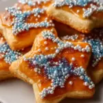 Delightful cookies with a perfect balance of crisp edges and a soft, chewy center, adorned with shimmering star sprinkles.