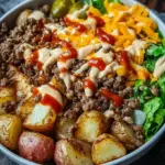 A wholesome, low-carb bowl that reimagines classic burger flavors with juicy ground beef, tender red potatoes, and creamy sauces.