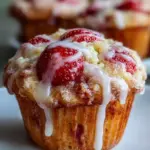 Deliciously soft strawberry muffins topped with a zesty lemon glaze, perfect for breakfast or a sweet treat.