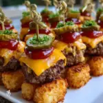The delightful aroma of sizzling beef mingles with the golden crunch of Tater Tots, creating a sensory explosion that whets the appetite. Imagine sinking your teeth into a petite cheeseburger bursting with flavor, where the juiciness of the beef patty meets the warmth of melted cheddar and the satisfying crunch of crispy Tater Tots. Each bite offers a playful dance of textures—the creamy cheese, the tender meat, and that irresistible crunch that gives way to deliciously soft, mini burger buns. It captures the nostalgia of backyard cookouts while offering an innovative twist that even the pickiest eaters will adore.