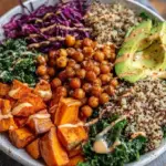 Make-Ahead Tips: Preparing quinoa and roasting the sweet potatoes and chickpeas a day in advance saves time. Store everything separately in the fridge for easy assembly later.